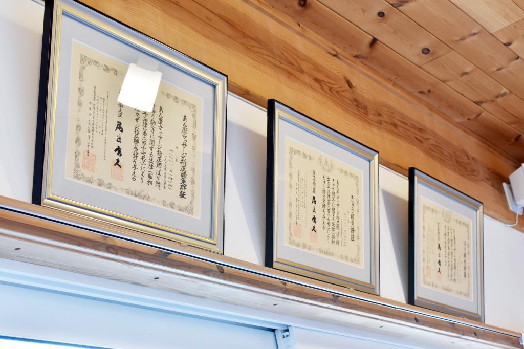 国家資格のあん摩マッサージ指圧師・きゅう師・はり師の資格を持つ先生の安心の施術を受けることができる。