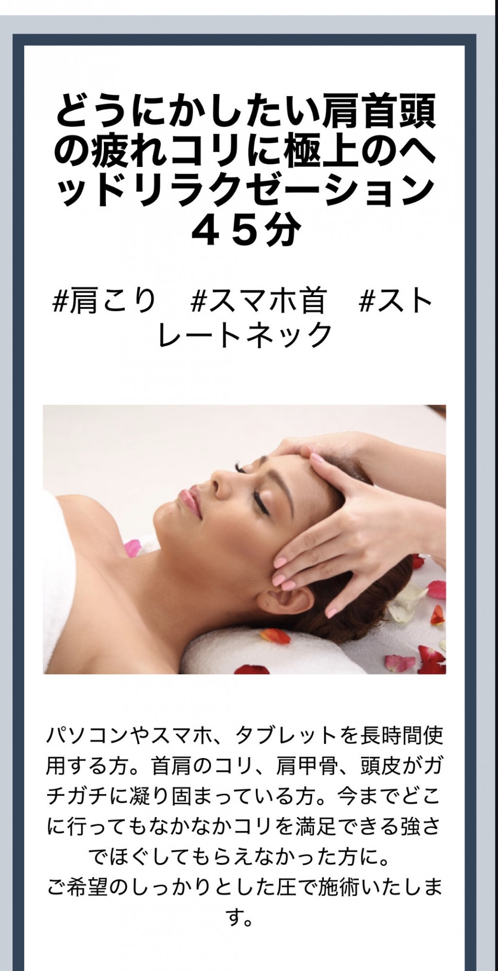 ≪どうにかしたい肩首頭のコリ疲れに極上のヘッドリラクゼーション≫