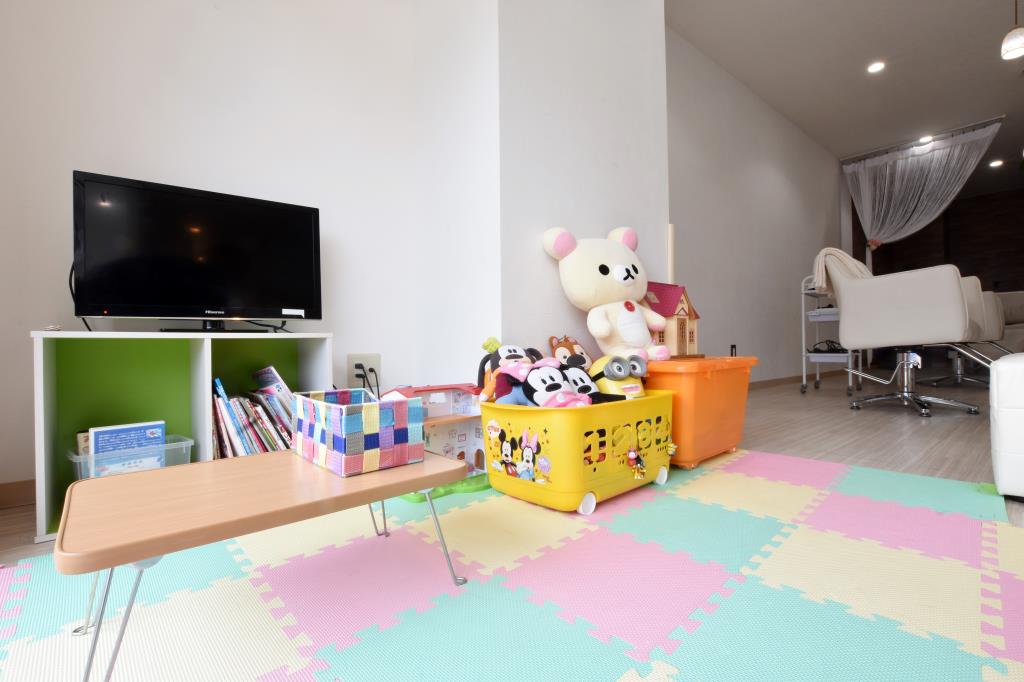 また、店内には広めのキッズスペースを完備。施術台から目の届く場所にあるので、お子様連れでも安心して利用できるのが嬉しい。