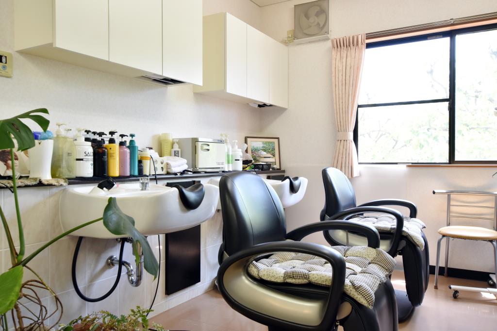 お店周りは植物が植えられていてとても爽やかな雰囲気の美容室。