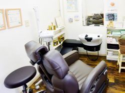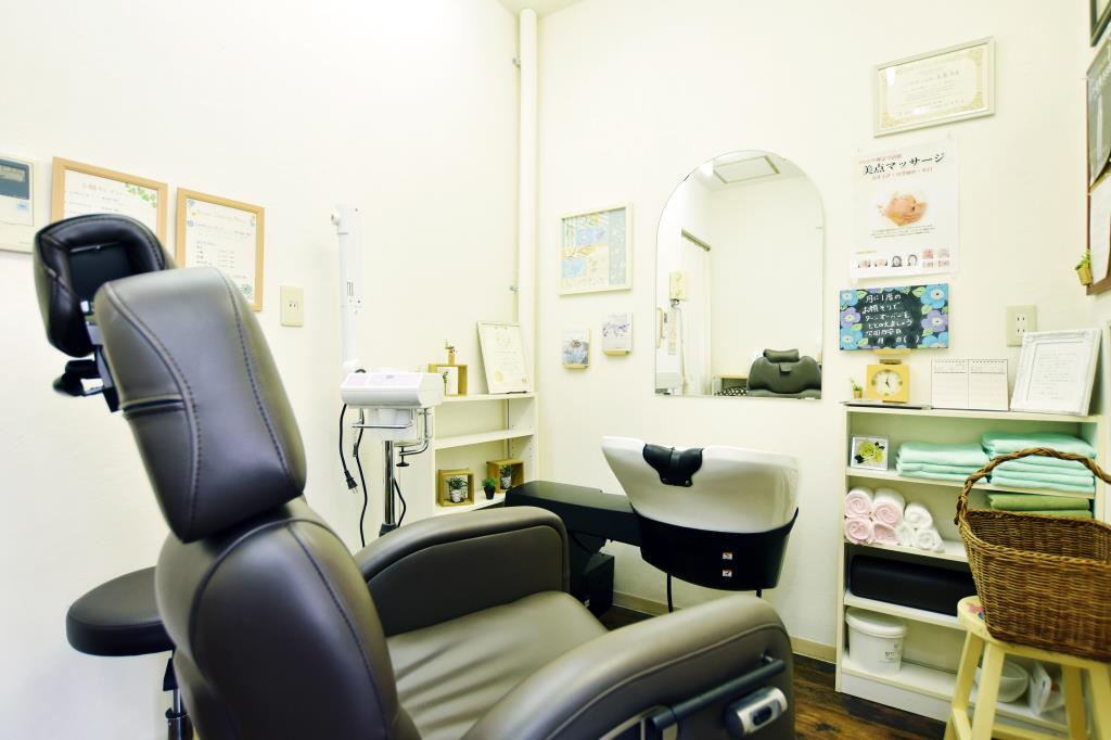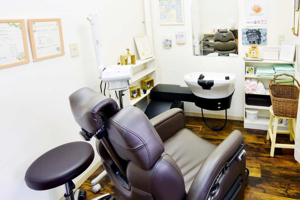理容院の雰囲気とはまた違った仕切りのある半個室空間で、人目を気にせずリラックスして施術可能。