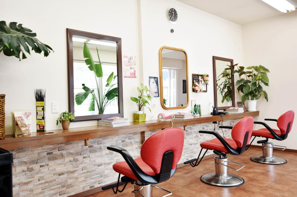hair room uki印象的な赤い扉を開けると、可愛らしいインテリアが並んだまるでカフェのような美容室。友達のお家に遊びに... -