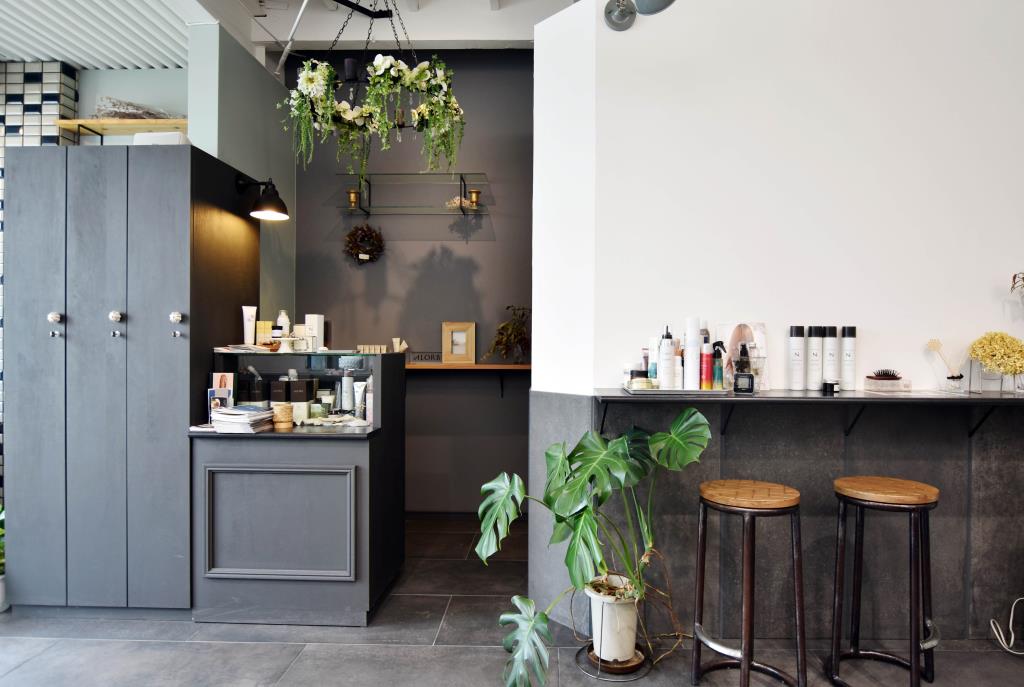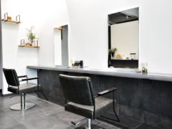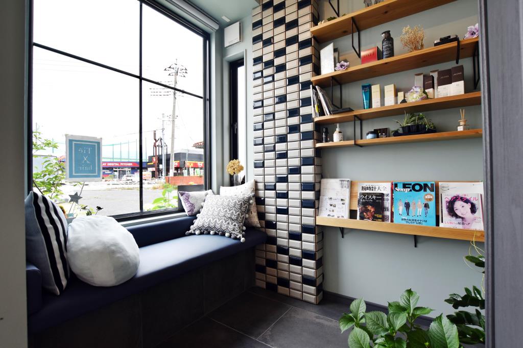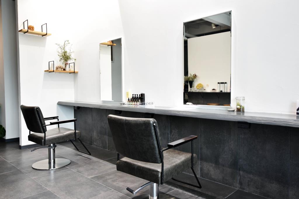 LIBERTE HAIR DESIGN光と風マーケットコート内に入っているLIBERTE HAIR DESIGN。ブルーグレーで統一され、... -