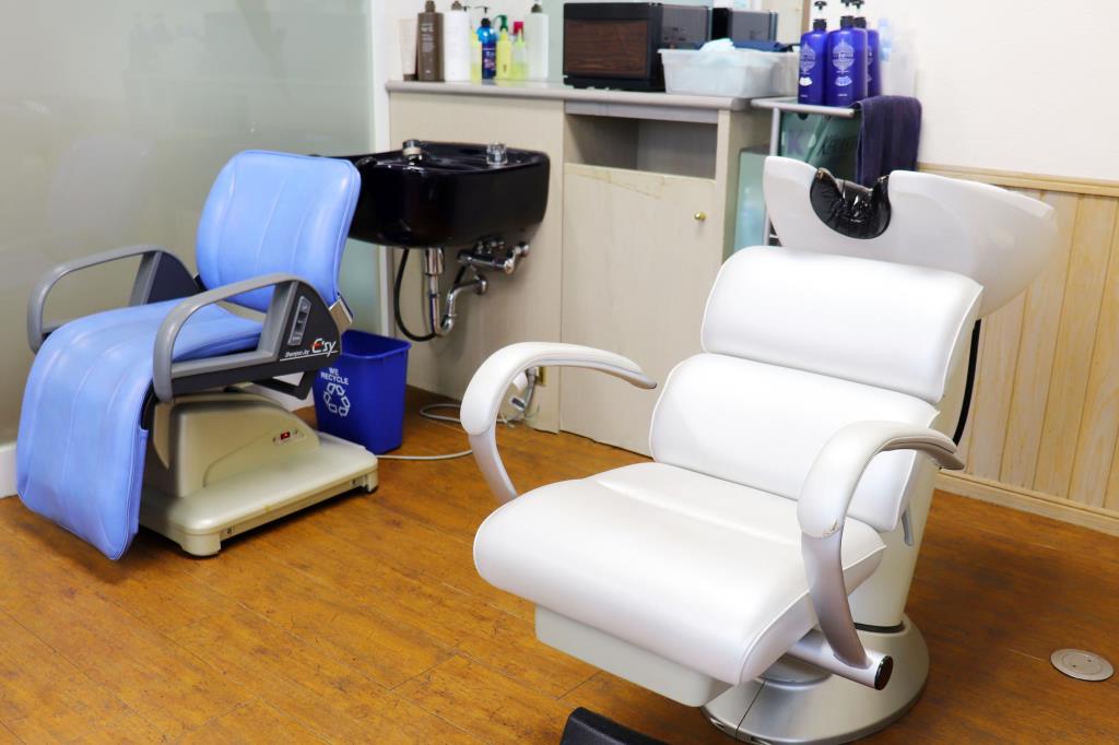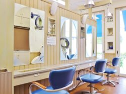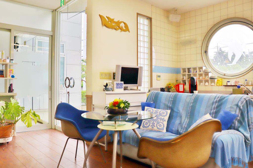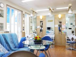 白と青を基調とした清潔感溢れる店内はアットホームな雰囲気でとても居心地がよく、子どもから大人まで男女問わずに希望のヘアスタイルを叶えてくれる。