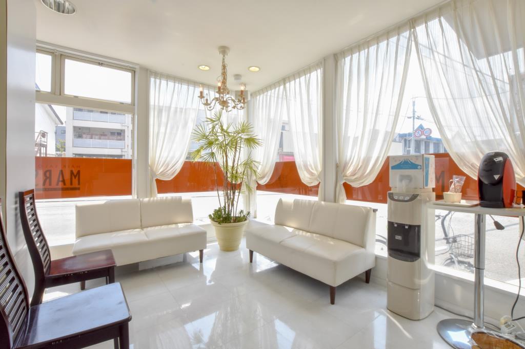 大きな窓から日差しが差し込み、明るくさわやかな雰囲気のヘアーサロンMARS。