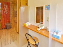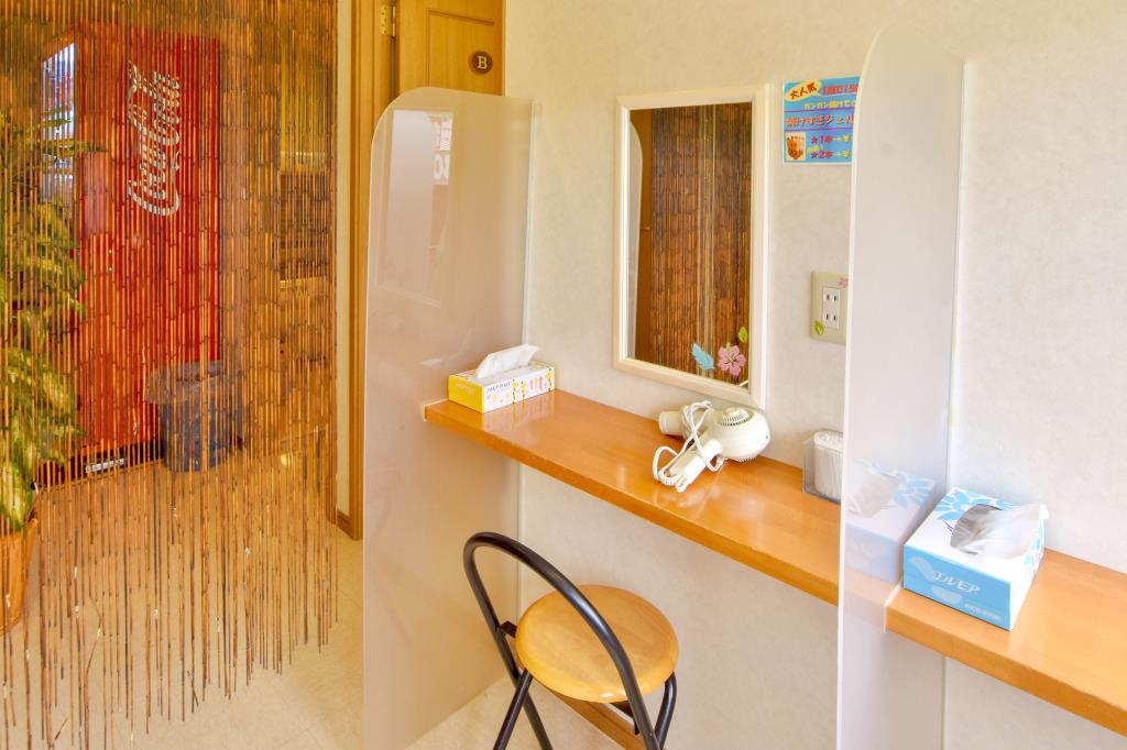 店内には、ドライヤー完備のメイクコーナーも設置。