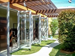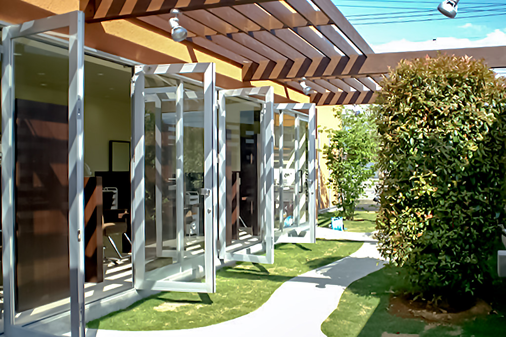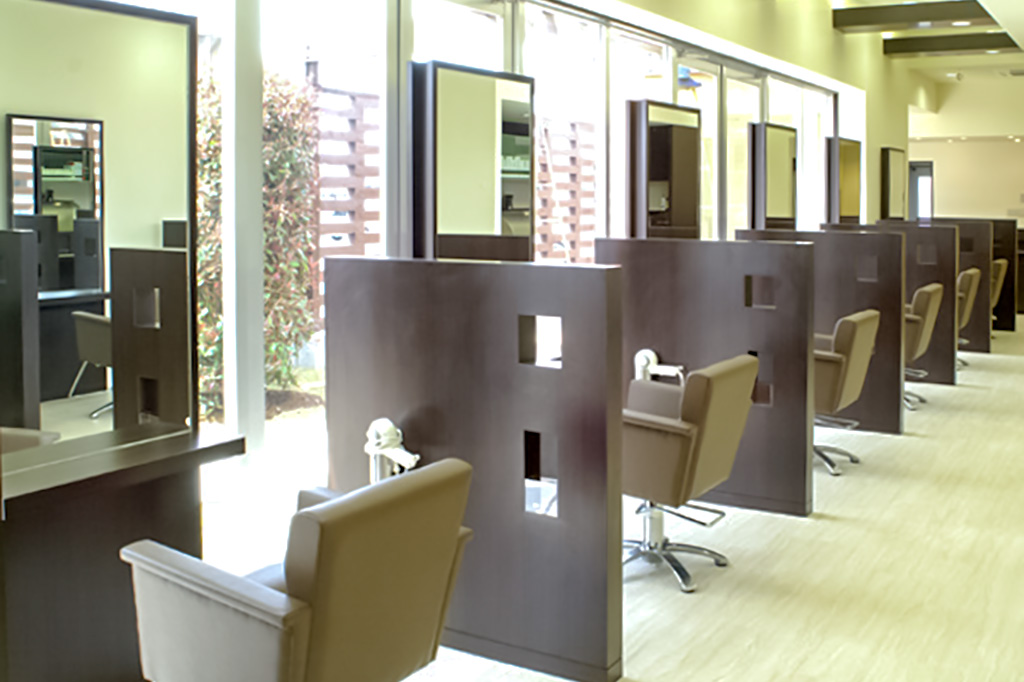 LIBERTE HAIR DESIGN光と風マーケットコート内に入っているLIBERTE HAIR DESIGN。ブルーグレーで統一され、...