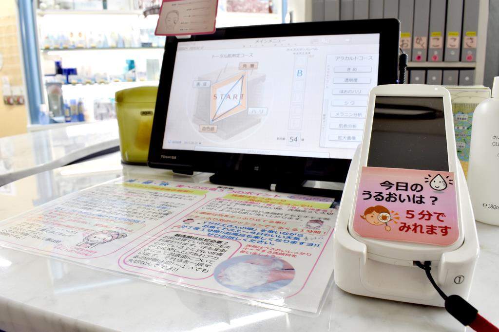 スキンセンサーによる肌診断を実施しており、肌状態を詳しく分析してくれる。
