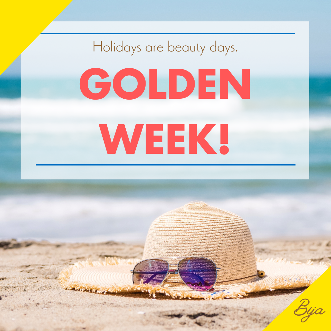今年も気付けば4分の1が過ぎようとしていて アッという間にゴールデンウィークですね! 連休のご予定はお決まりですか? Bijaでは 4月27日~5月6日のGW期間中は ... -