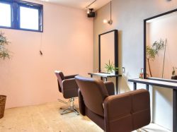 Hair Make HAL北欧風のカラフルでお洒落な雰囲気のヘアサロン。セット面がひとつひとつ仕切られており、プライベートな空... -