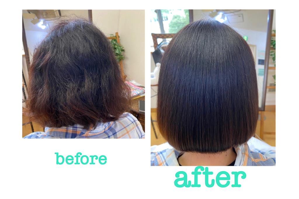| メニュー | ●縮毛矯正(カット・シャンプー・ブロー・トリートメント処理込み) ・初回…22,000円 ・2回目以降…サイクル料金 ※髪の長さは問いません。 ※2回目以降は1人1人に合ったサイクルでの施術を実施しています。 ●カラー(カット・シャンプー・頭皮ケア・トリートメント処理込み)…14,036円 ※全て税込 |