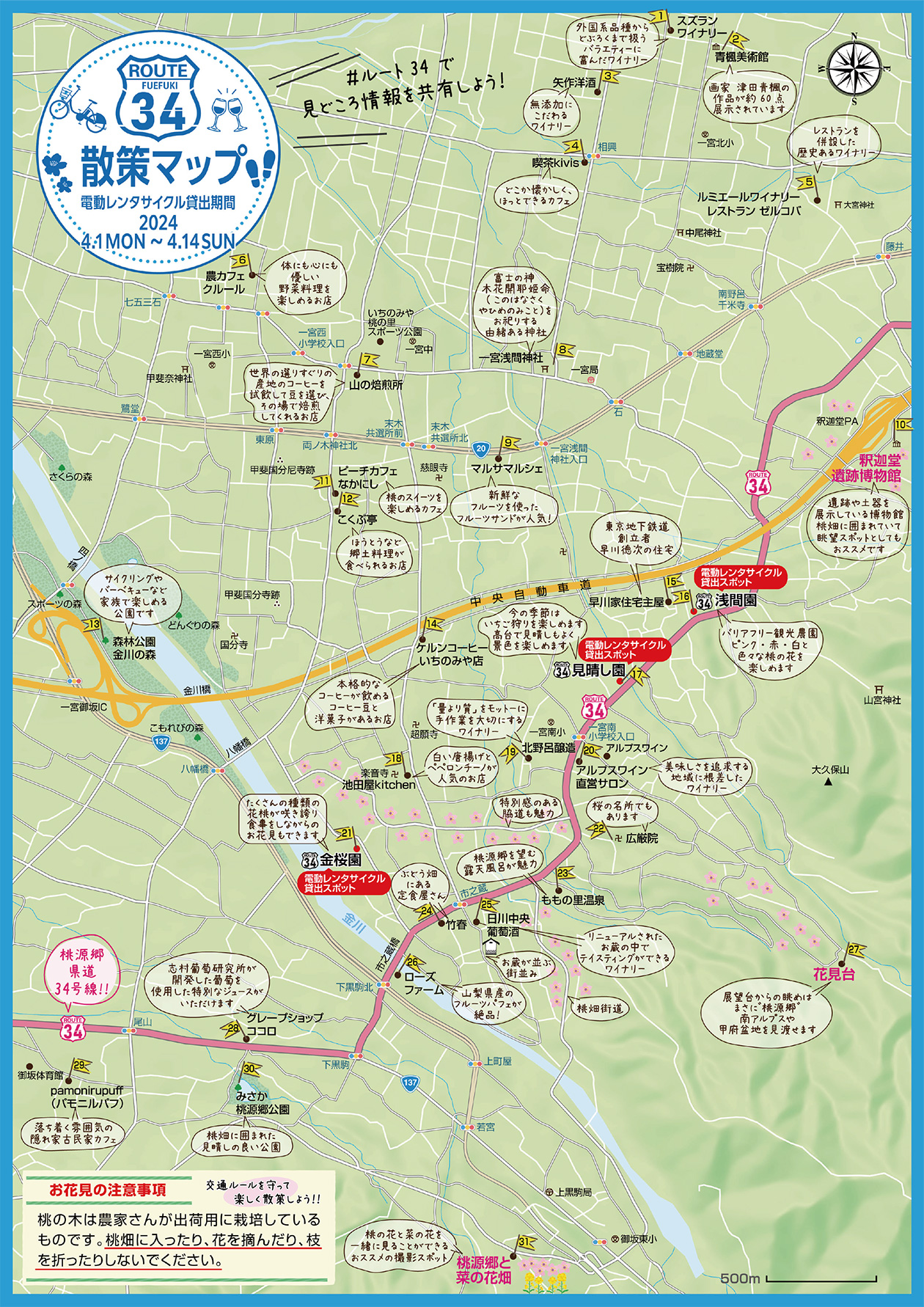 レンタサイクル貸出スポット ・甲斐いちのみや金桜園 ・浅間園 ・見晴し園 |
