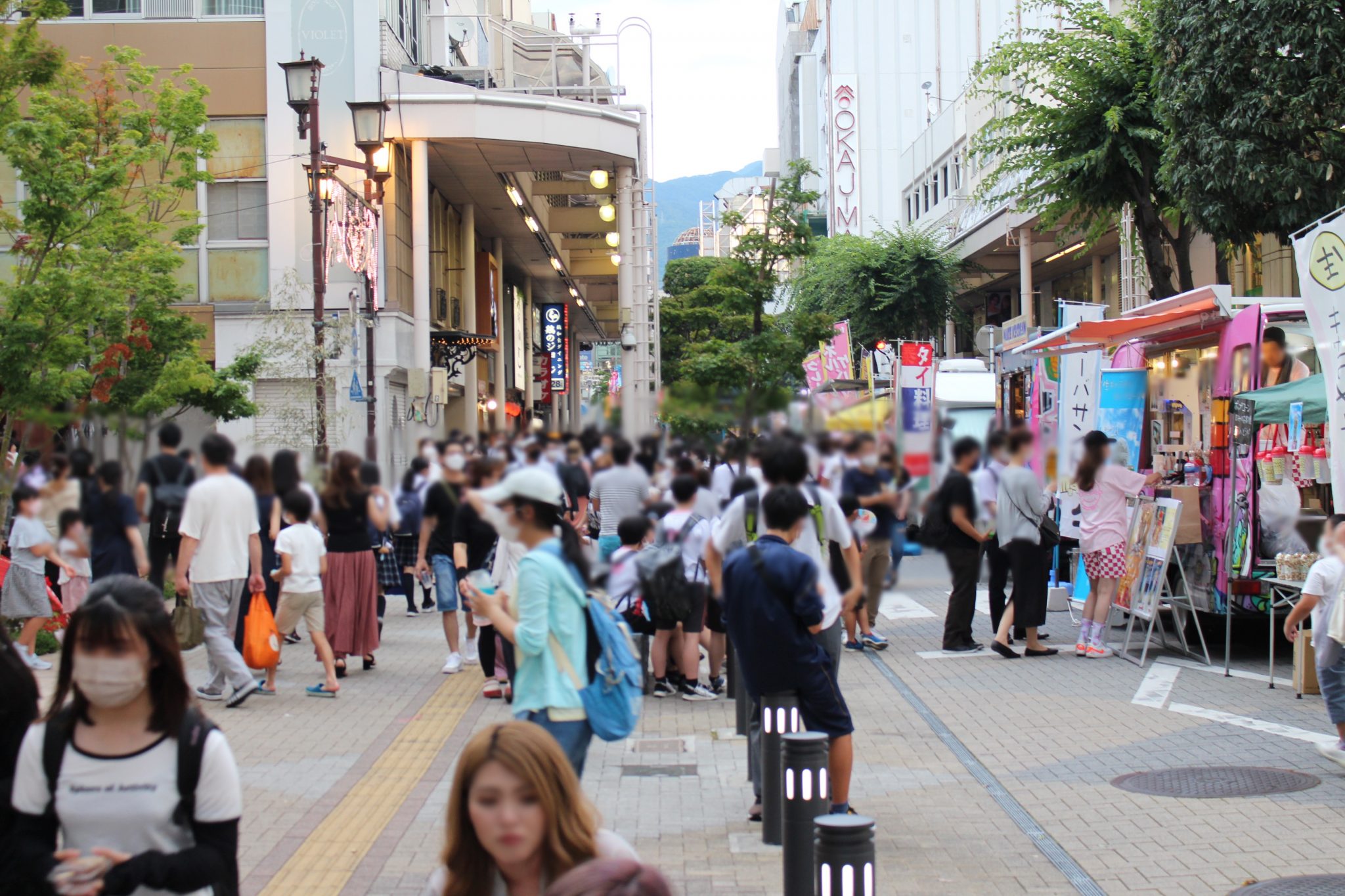 7月7日を中心に、中央商店街には出店もたくさん立ち並び、浴衣姿の人たちで賑わいます。