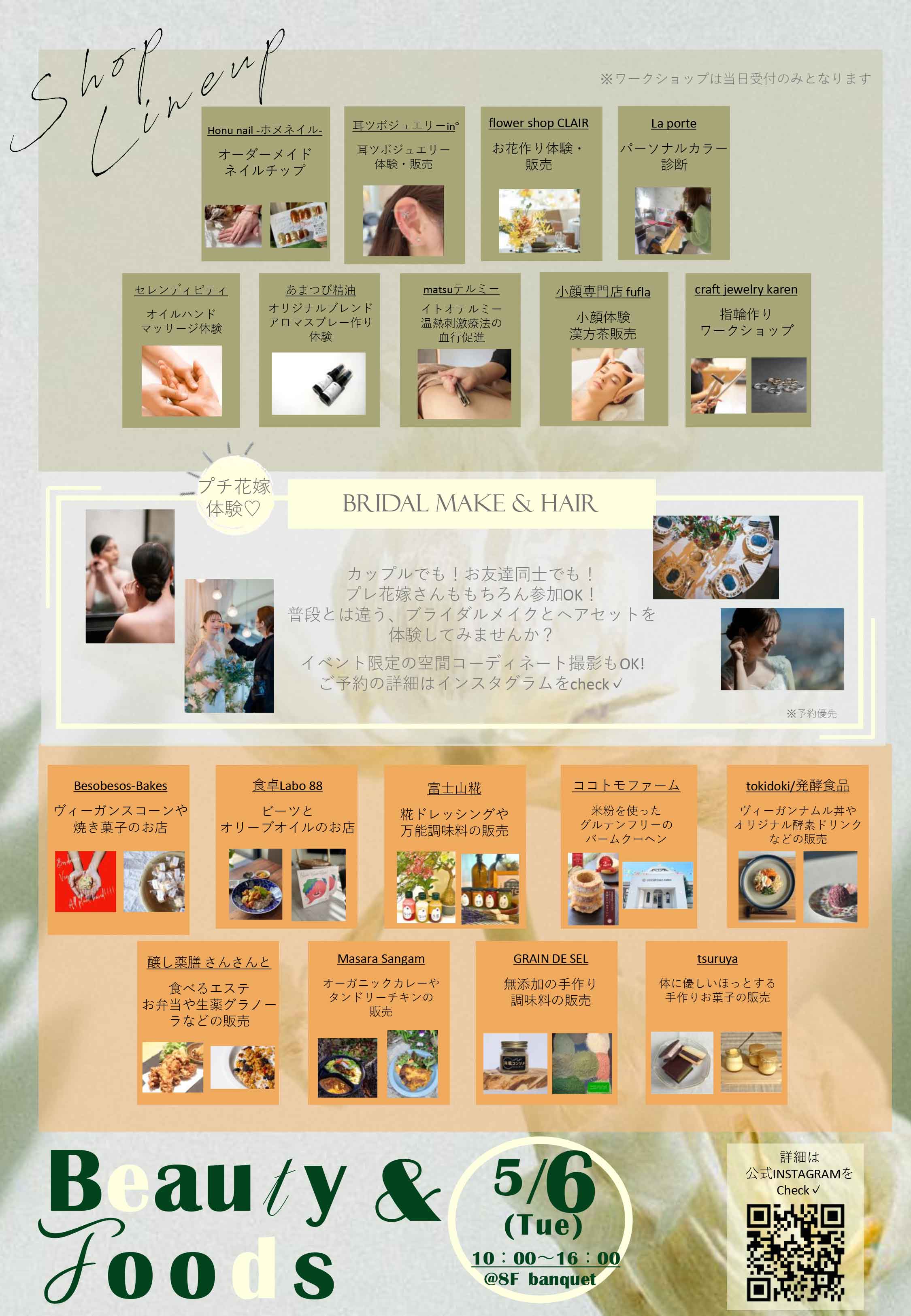 美容や健康に着目したワークショップ・フードショップが約20店舗大集合!外面内面共に綺麗なりましょう♡