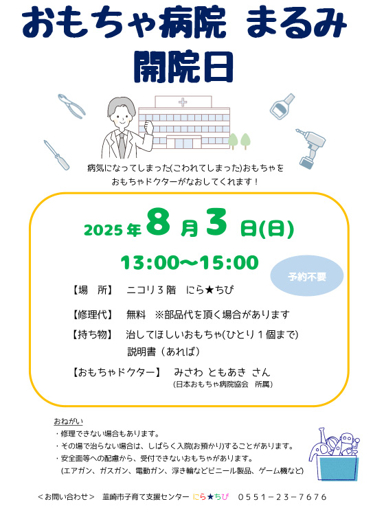[ おもちゃ病院 まるみ 開院日 ] 韮崎市子育て支援センター にら★ちび