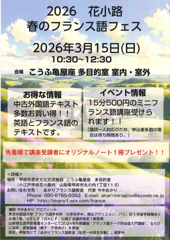 [ 2026花小路 春のフランス語フェス ]甲府市歴史文化交流施設 こうふ亀屋座
