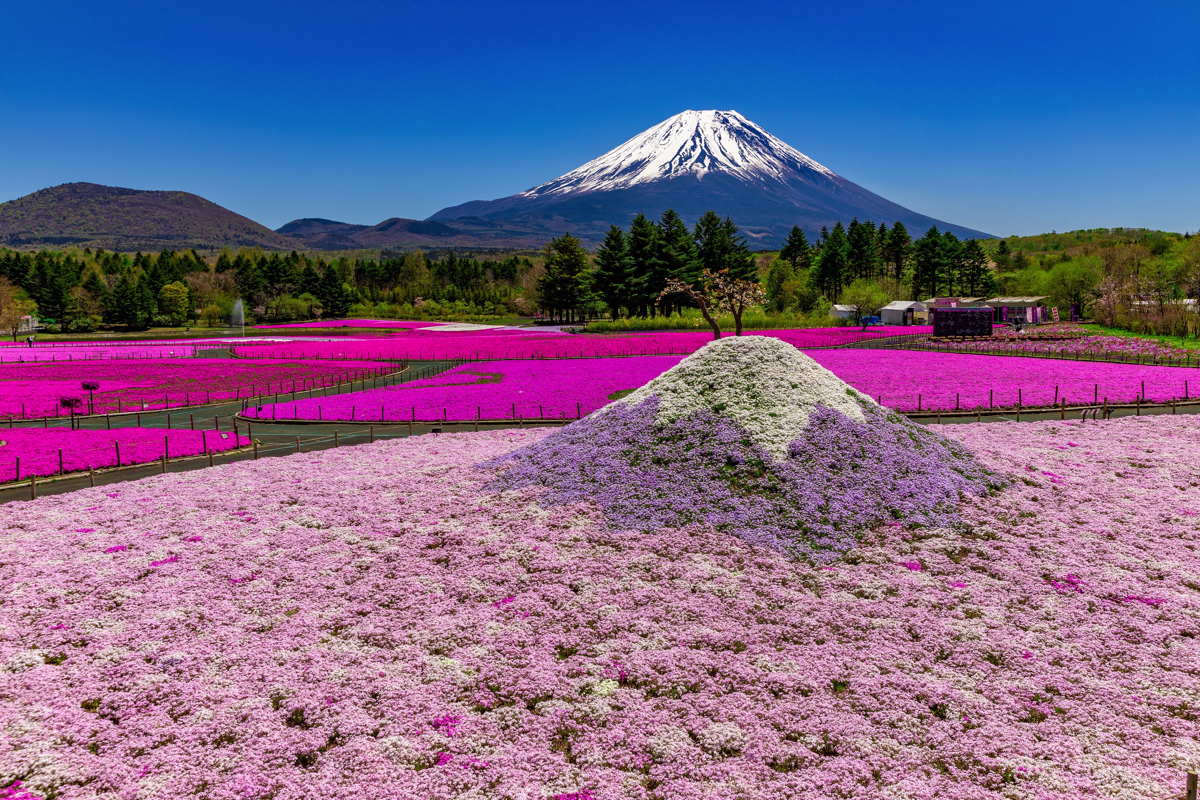 鮮やかな色のコントラストが美しい、富士山を彩る春の風物詩です。