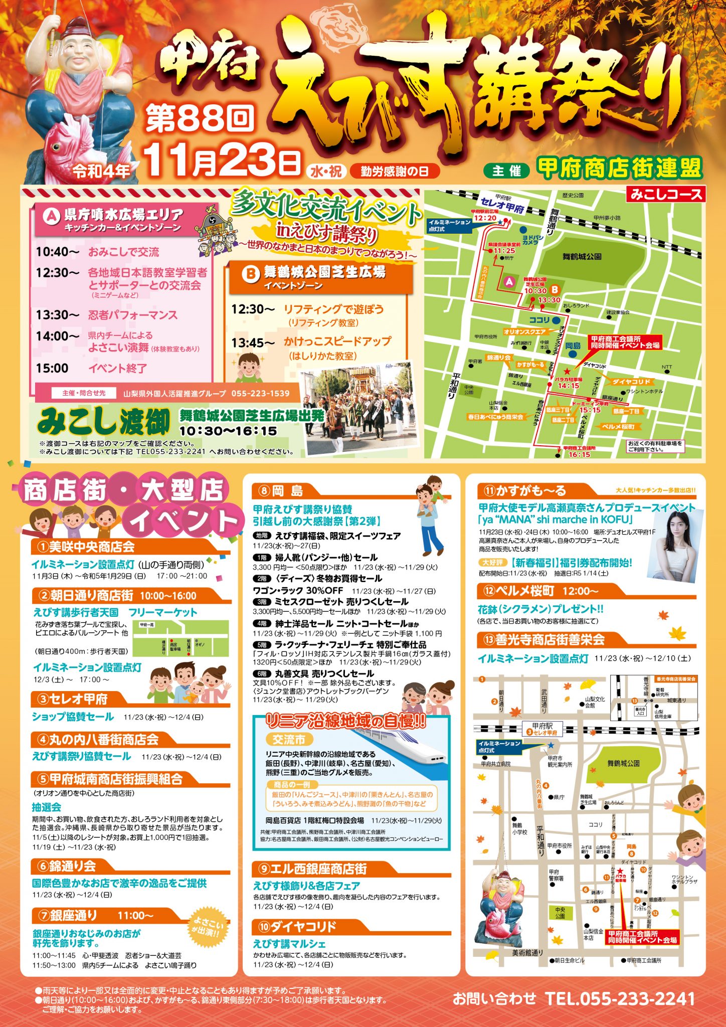 毎年勤労感謝の日11月23日に、甲府市中央商店街周辺で開催される祭りです。
