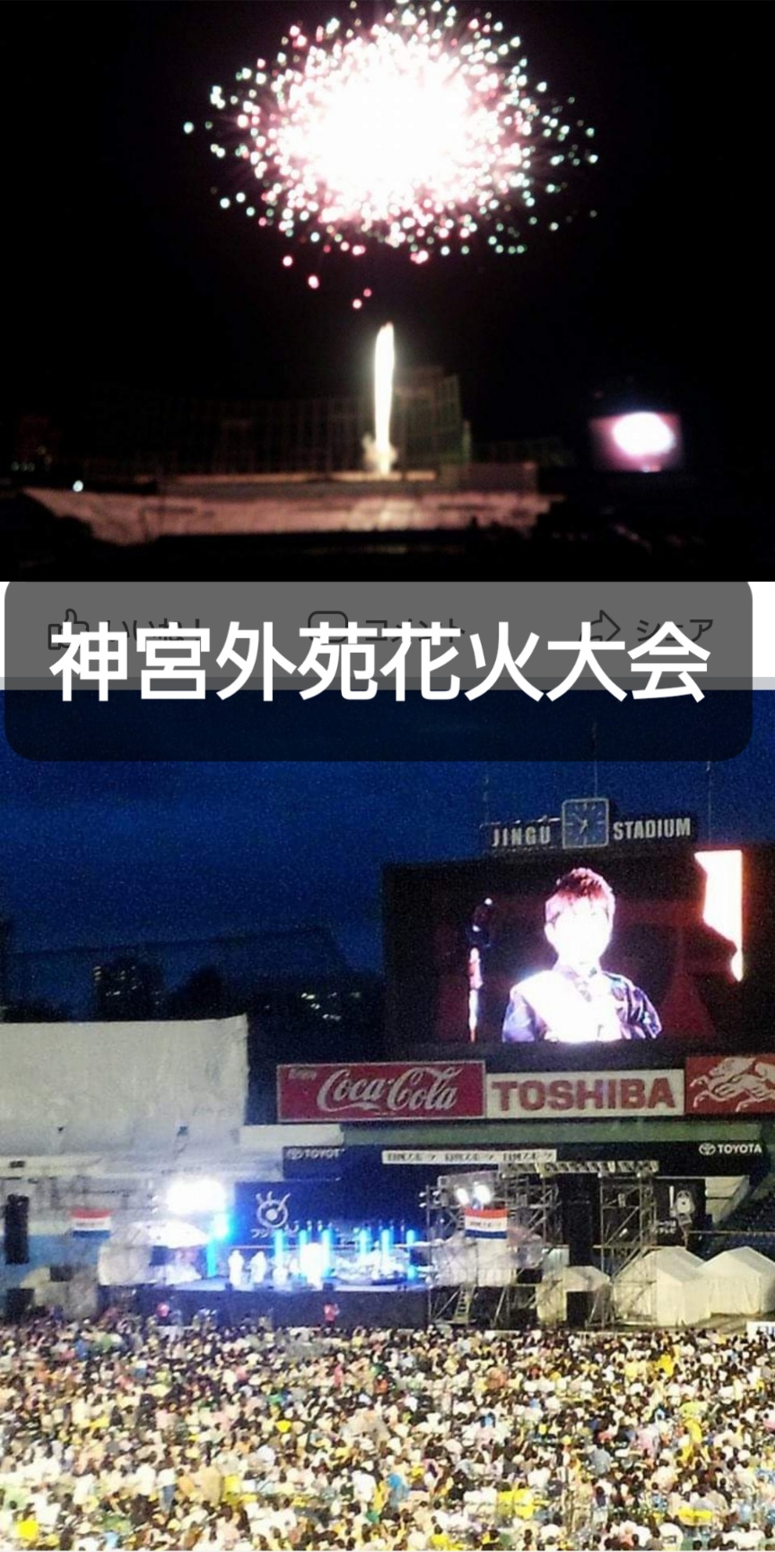 花火は球場の外からでも見えますが、指定席だと仕掛け花火や音楽、レーザー光線との競演が見られ、ステージに鈴木福くん、MayJ、玉置浩二、松村も来ていて楽しかったですよ🎵