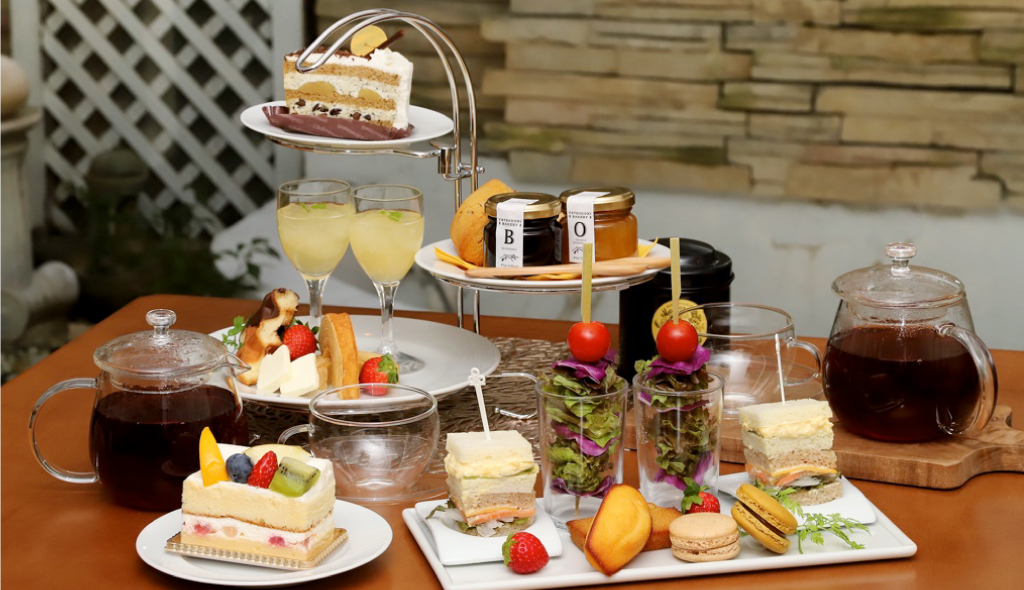 アーチの門をくぐり、石畳のエントランスの先には白壁のヨーロッパ調の佇まい。中央市山之神のアットホームな温かみに溢れる「山梨グランドホテル」に併設されたレストランということで、この長いアプローチからエレガンス香る“アフタヌーンティー”へといざない、プチ贅沢気分を盛り上げてくれる。ホテルならではのホスピタリティを味わいながら、大人のティータイムを。