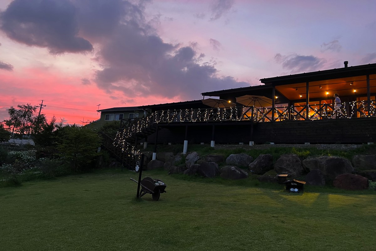 季節ごとに色彩が変わっていく壮大な山々と畑を見渡せる展望デッキ。ここでゆったりとお茶したり、お酒を飲んだりするのも気持ちよさそうだ。
