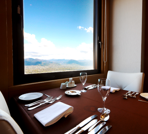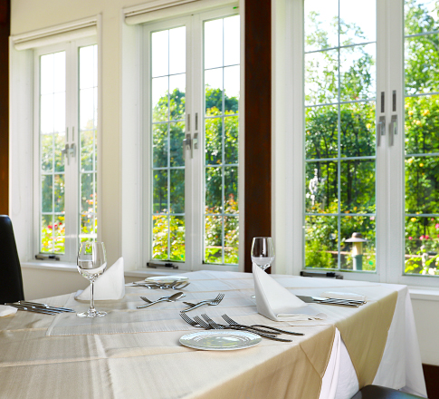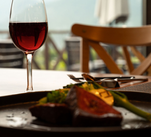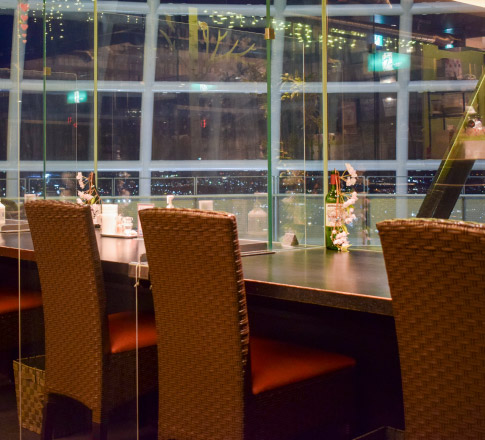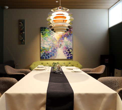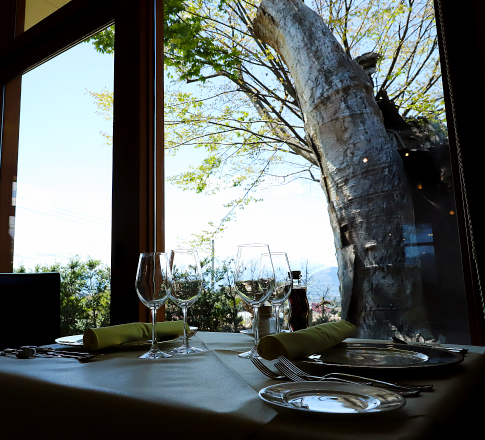 昼は明るい日差しが心地よく差し込み、外の風景を楽しみながら、夜はライトアップされたガーデンを目の前にムーディに、時間とともに表情を変えるこの店ならではのプレゼンテーションに魅了されるだろう。