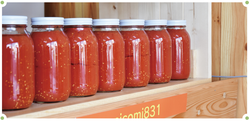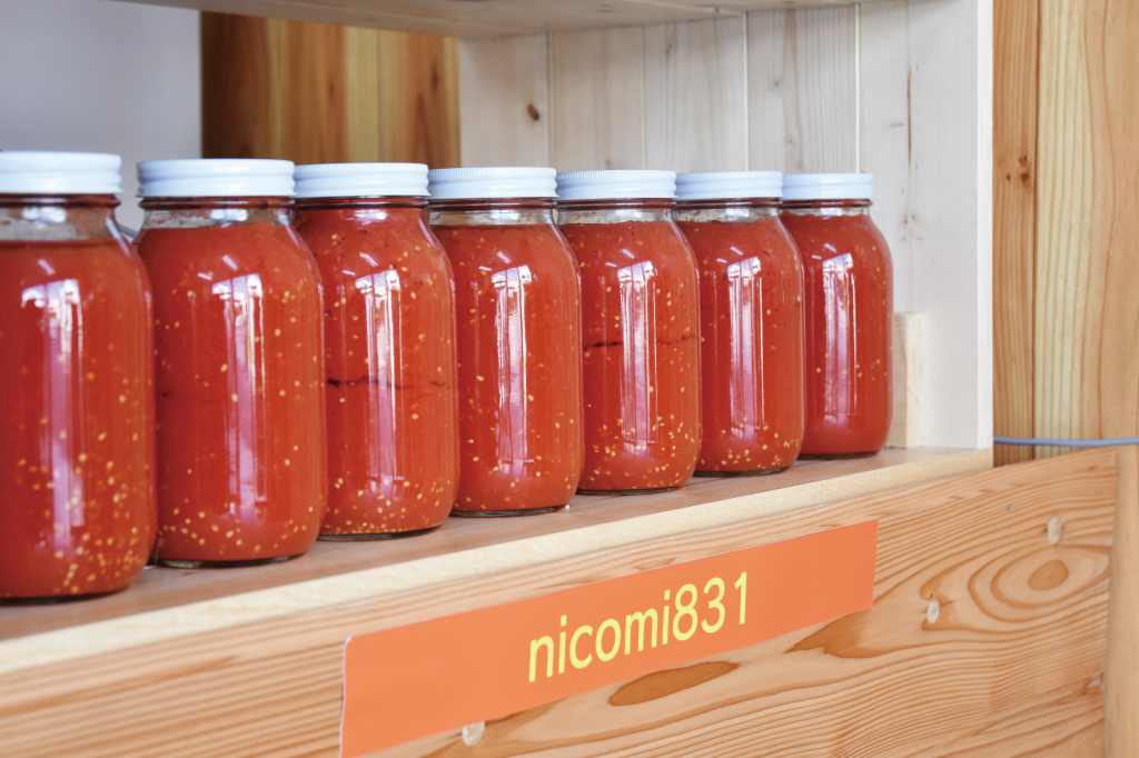 夏には10種類のトマトを収穫、熱して瓶詰めに。