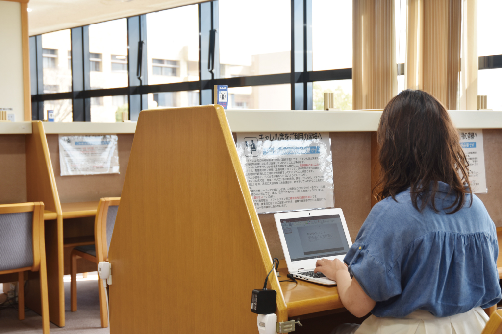 集中して、ちょっと仕事をすませておきたい人は、2階奥の無線LANが使える机を利用してみて。