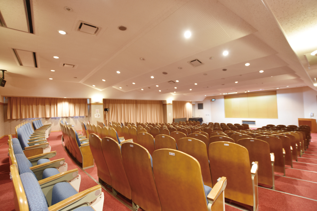 2階視聴覚室は固定席182席、ハイビジョン上映が可能な190インチの大スクリーンを備え、定例的な上映会のほか、年間を通じて各種イベントを開催。