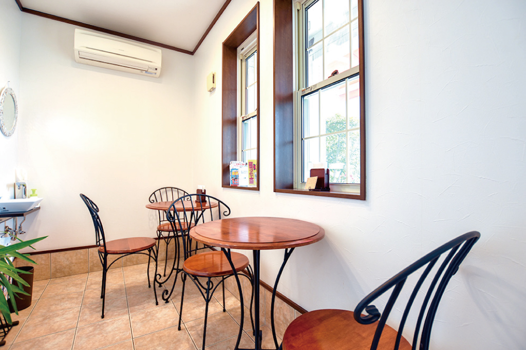 赤と白を基調とした店舗は、シンプルでおしゃれな佇まい。