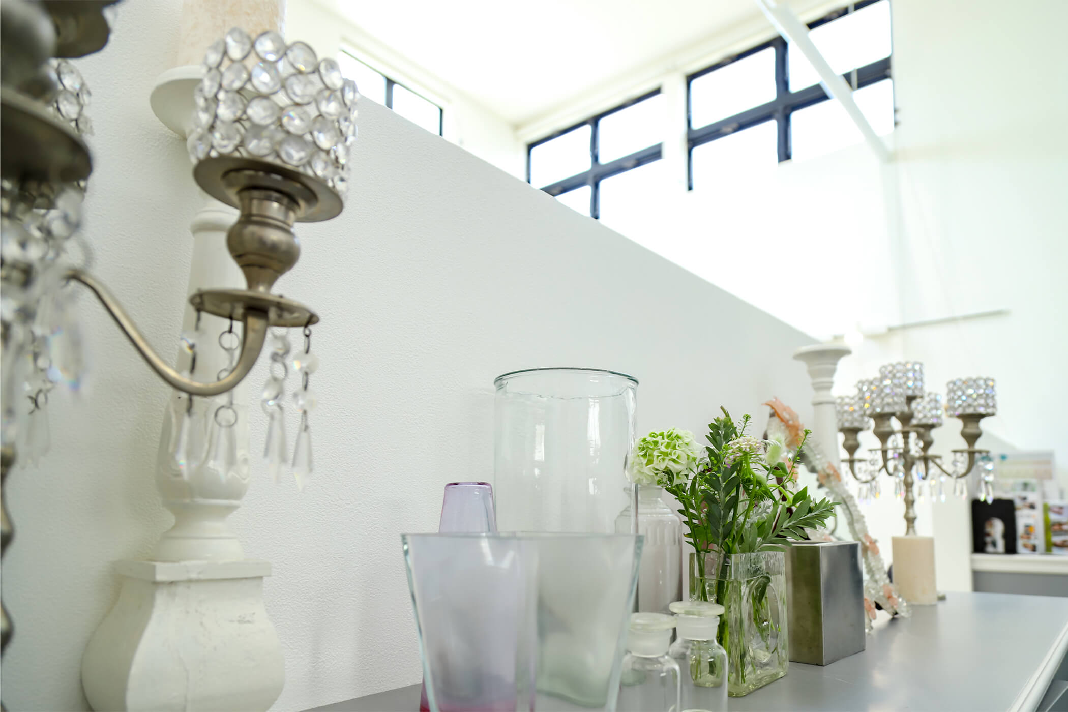 白を基調にした店内にはグリーンや季節の花が飾られ、リラックスできるおもてなし空間が広がる。
