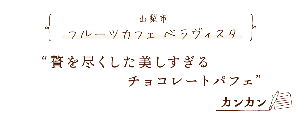 店名の“ベラヴィスタ”とは「眺めの良い場所」という意味。四季ごとに様々な表情を見せる富士山と甲府盆地を背景に、ぶどうや桃といった山梨市名産のフルーツを使ったカフェメニューが堪能できる。山梨県立笛吹川フルーツ公園内にあるので、食後は広大な園内を散策するのもおすすめ。