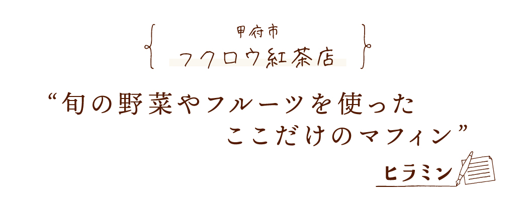 平和通り沿い、なかだてスイミングスクールの向かいに位置するカフェ。カフェと言ってもコーヒーではなく紅茶!山梨県初の紅茶スタンドとしてオープンしたフクロウ紅茶店は、昭和町にあるベーグル屋さん、リングベーグルの姉妹店。お店で出されるマフィンやスコーンの味は言わずもがな絶品。専門店なだけあり、珍しいエスプレッソティーラテも楽しめる。紅茶の茶葉をエスプレッソマシーンで抽出しており、芳醇な茶葉の香りとまろやかなミルクをご堪能あれ。