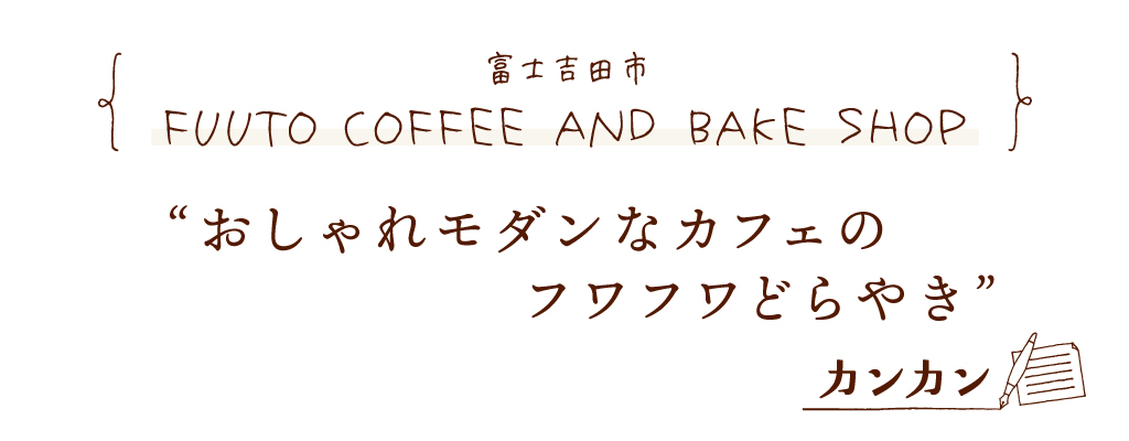富士吉田市の新しいカルチャー発信地として注目を集める月江寺エリア。その地で70年以上もの長きに渡り愛されてきた豆腐屋が、2022年にモダンなカフェとして生まれ変わってできたのが「FUUTO COFFEE AND BAKE SHOP」だ。おしゃれなこのカフェの看板メニューのひとつは、なんと昔ながらの「どらやき」。県産小麦「かいほのか」を使用した生地はフワフワもっちりで、北海道産小豆を鬼ザラ糖で炊いたあんこと絶妙なハーモニーを奏でる。