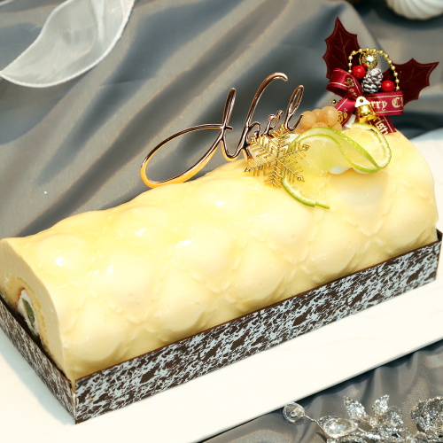 丸太の形をしたフランス伝統的な「ビュッシュ・ド・ノエル」が、2025年ハイランドリゾートのクリスマスケーキにラインナップ!フランス・ヴァローナ社の香り高いチョコレートで作るムースにオレンジをプラスし、甘さと爽やかさのコラボレーションが楽しめる贅沢なひと品に。