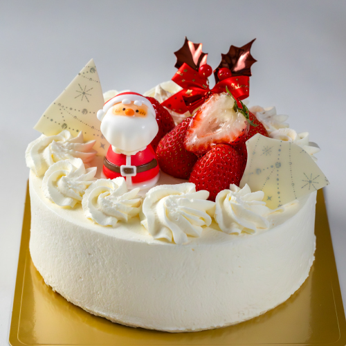 ふわふわのスポンジ生地に苺をサンドし生クリームをたっぷりと使用したシンプルなデコレーションケーキ。厳選したいちごと装飾を乗せクリスマスを演出してくれる。