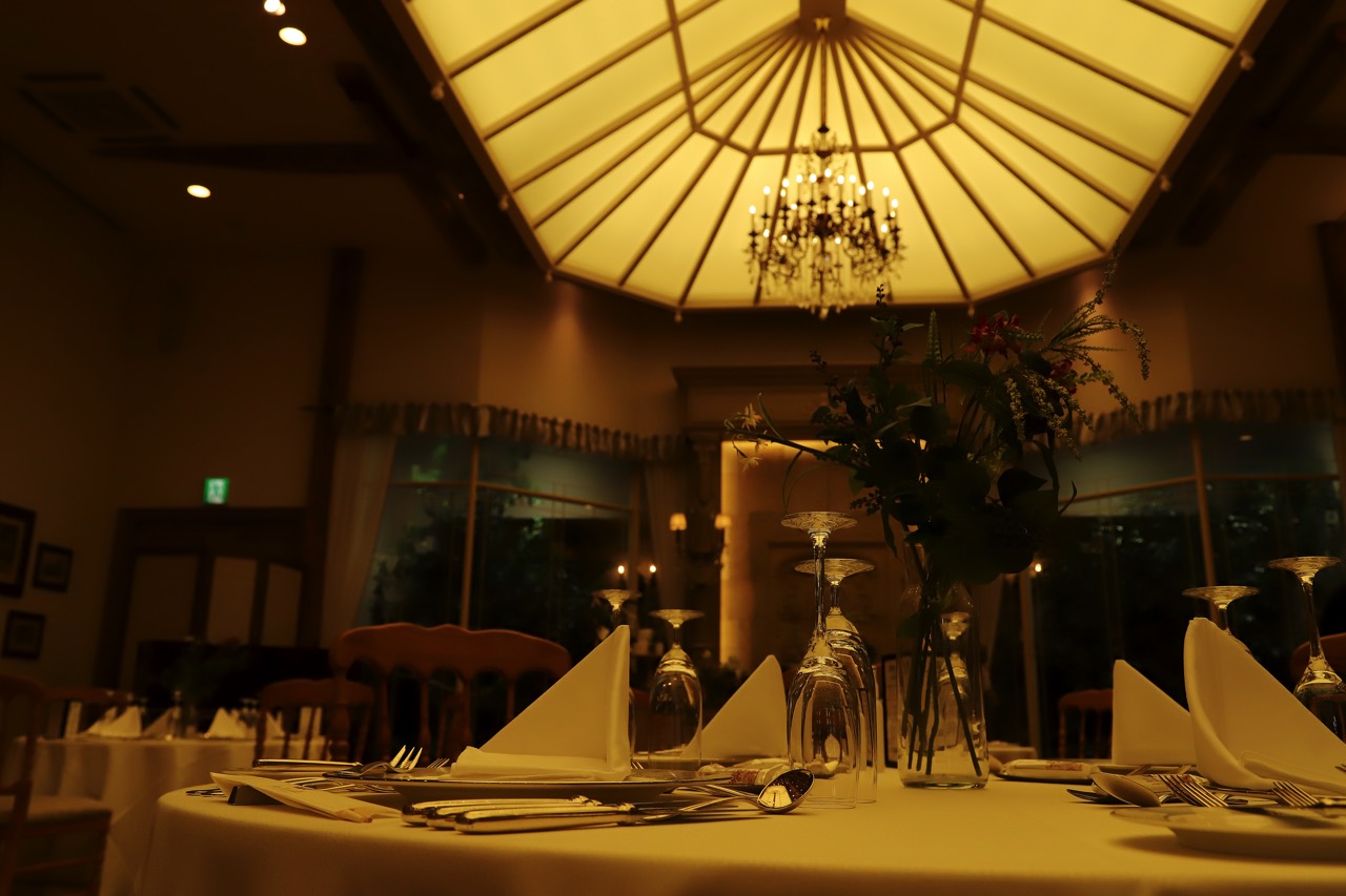 古き良きイギリスの面影が色濃く残るオリジナルワールドの中で、日常から解き放たれる時間がたまらなく贅沢だ。提供のタイミングから逆算して、細かな火入れの調節まで行い、最高の状態で料理がいただけるのは、さすがウエディングのプロ。ホールスタッフと厨房との連携の賜物だろう。温度帯を大切にしたひと皿一皿が旨味、甘み、塩味、コクと繊細な音色を奏でる。