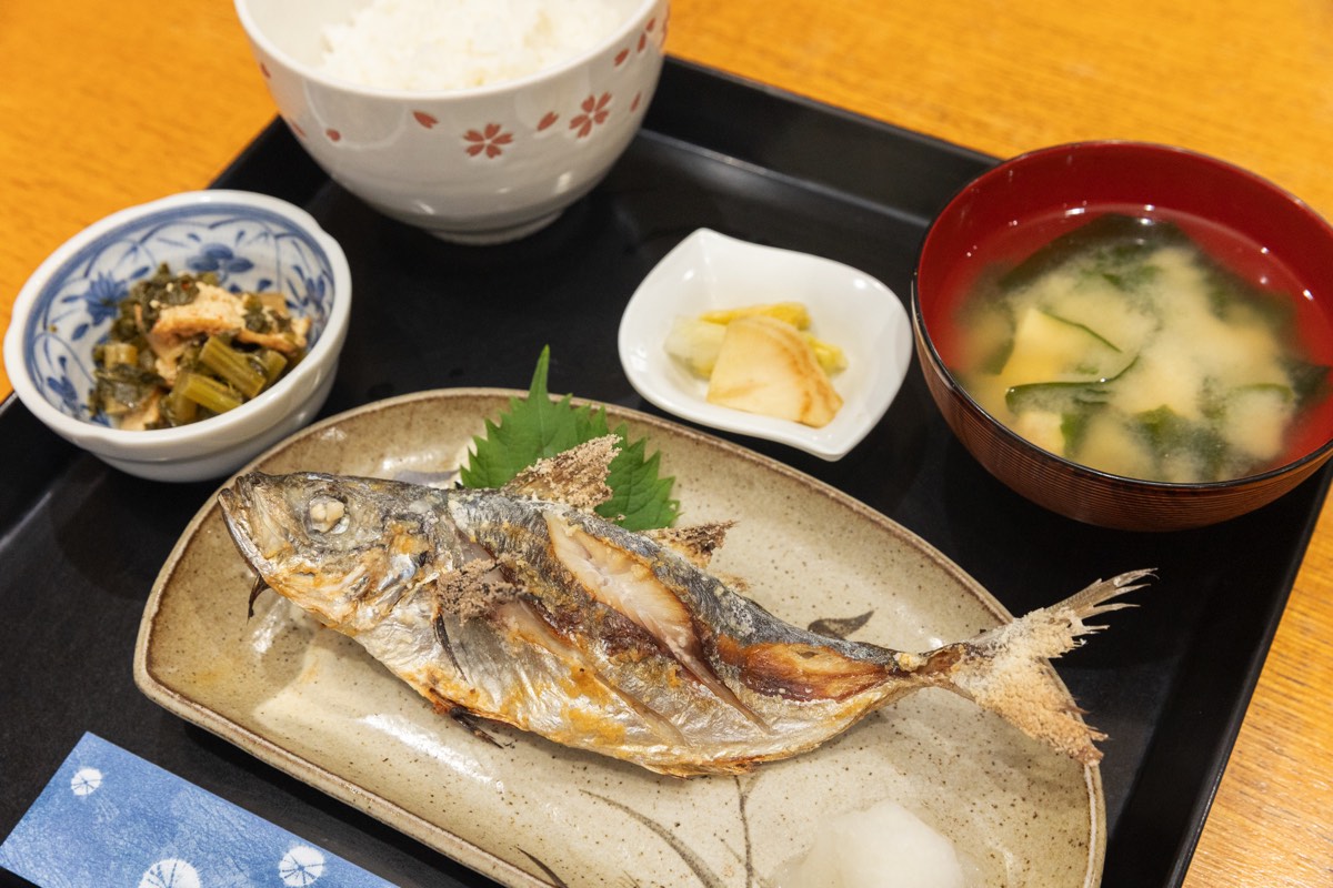 富士吉田市とにかく焼き魚定食が旨い!と大評判の定食屋さん。脂がのったあじを堪能するなら、開きではなくそのままのシンプルな塩焼きが一番!