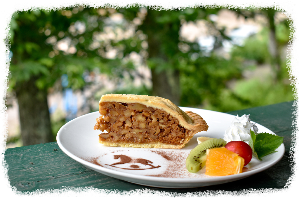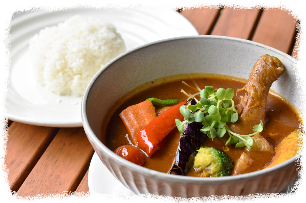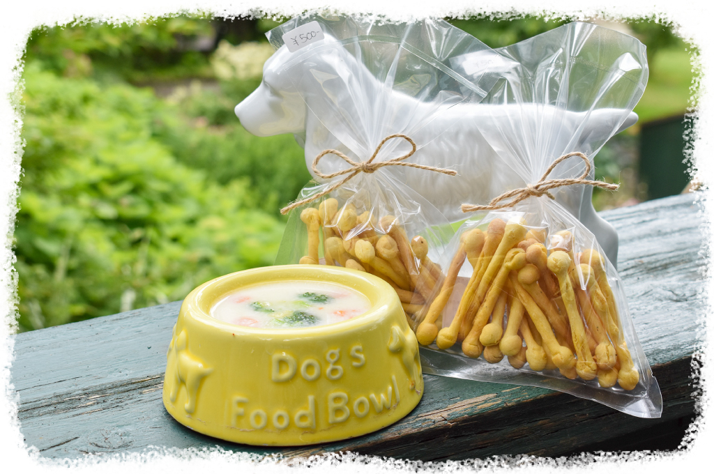 国産の鶏胸肉とにんじんをじっくり煮込んだわんちゃんシチュー(S450円/M550円/L1,000円)は創業当初からの人気メニュー。他にもミルクや自家製無添加クッキーなどわんちゃん用メニューが充実。飼い主さんにはスープカレー(1,530円)とクルミとほろ苦いキャラメルがマッチしたタルトケーキ(540円)がおすすめ。