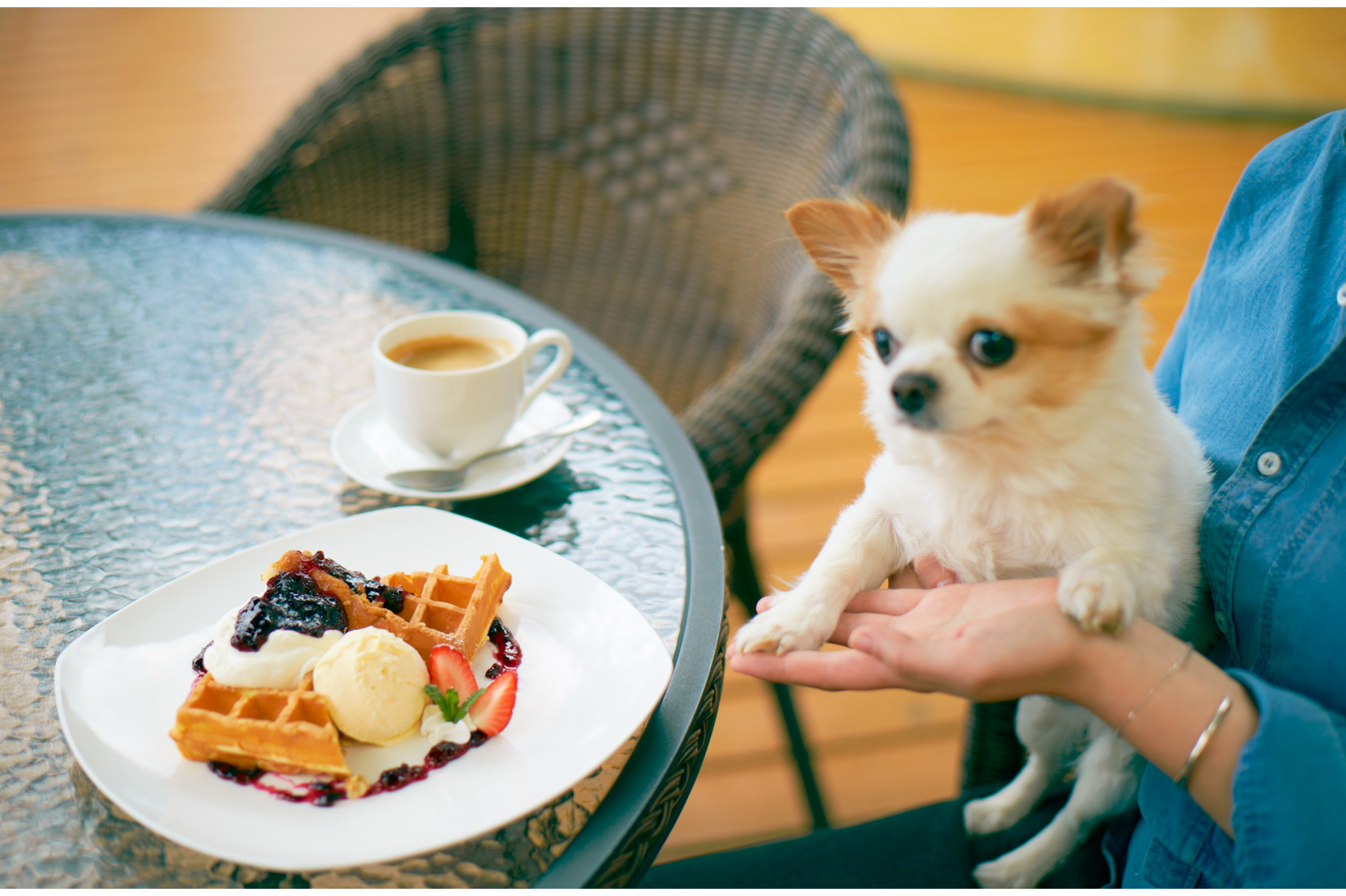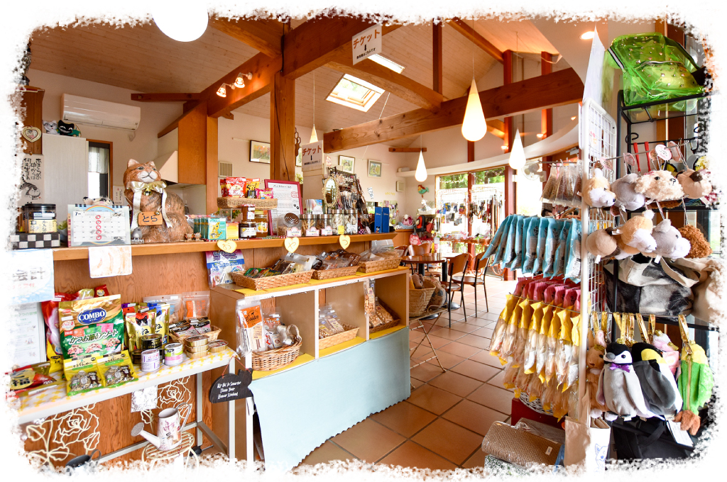 店内のカフェスペースでは愛犬と一緒にゆっくりティータイムを過ごす事ができる。天気の良い日はドッグランが眺められる開放的なテラス席がおすすめ。人気のワンちゃん用ポトフはSサイズ380円、Mサイズ480円、Lサイズ580円とサイズ選択も可能。他にもドリンクメニューや軽食が楽しめる。
