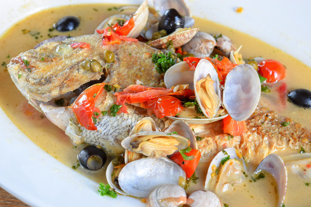 「材料にこだわらない」のがこだわりという店主。仕入れの状況で使う素材に合わせて、その都度料理を組み立てる。忘・新年会はサラダ、アクアパッツァ、ピザ、パスタに肉、魚、生ハムの盛り合わせなど7品がセット。