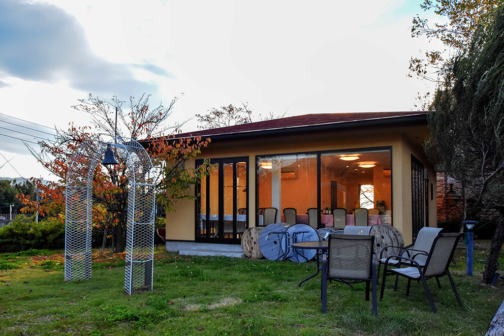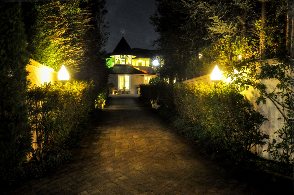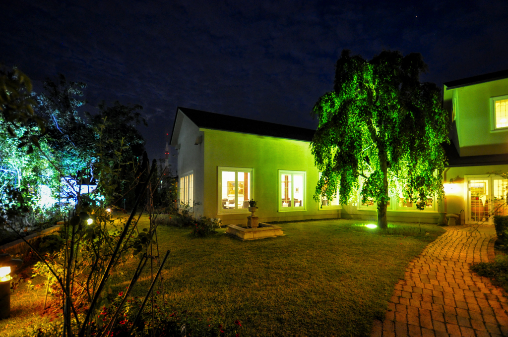 広大な敷地に建つ英国風ゲストハウスは、その佇まいだけでも十分フォトジェニック!昼間は緑鮮やかなイングリッシュガーデンが彩り、夜には幻想的なライトアップに浮かび上がる。スペシャルな大人のパーティが実現。