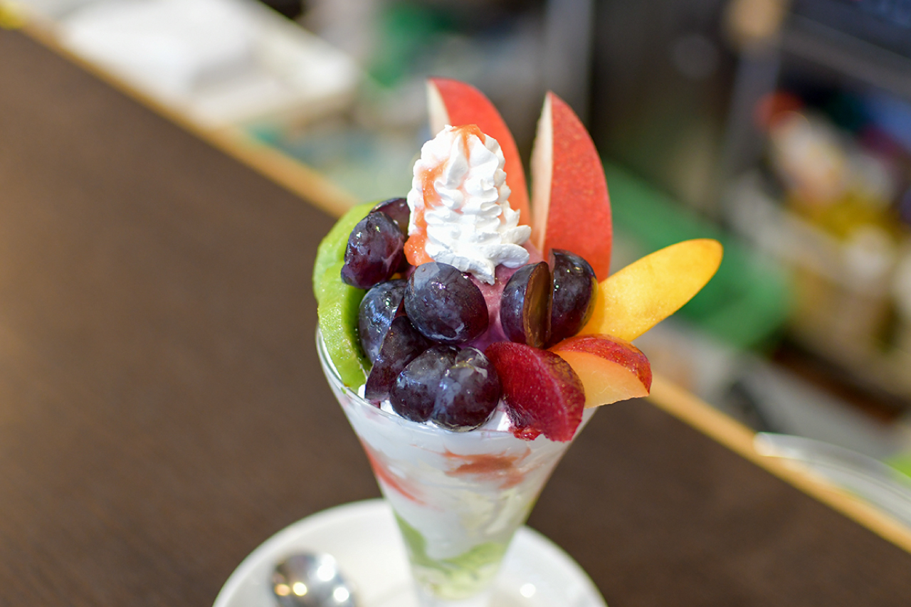 山梨市駅前の山梨市地域交流センター・街の駅やまなし内にあるカフェ。地元の美味しいフルーツをふんだんに使った料理やスイーツが楽しめることで、県内外にファンが多い。1番人気のオーチャードパフェは、地元産フルーツを中心に、色鮮やかな季節の果物がたっぷり。手作りのジャムやゼリー、アイスが入った、贅沢なパフェは食べ応えも十分!