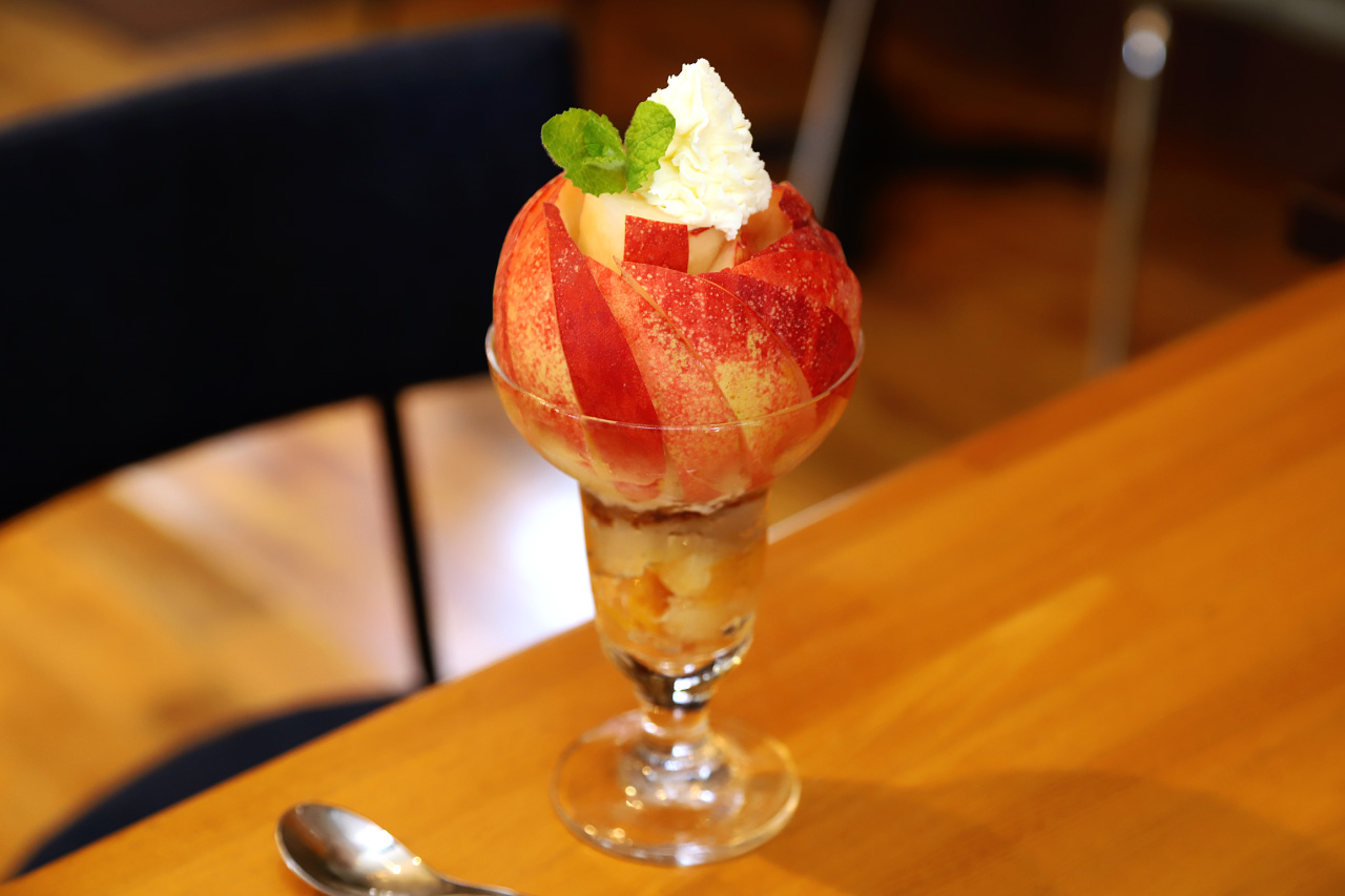 自家農園の桃を使ったメニューは、桃自体の美味しさはもちろん、その風味を最大限活かした調理法により、どれも甘美な味わいのものばかり。