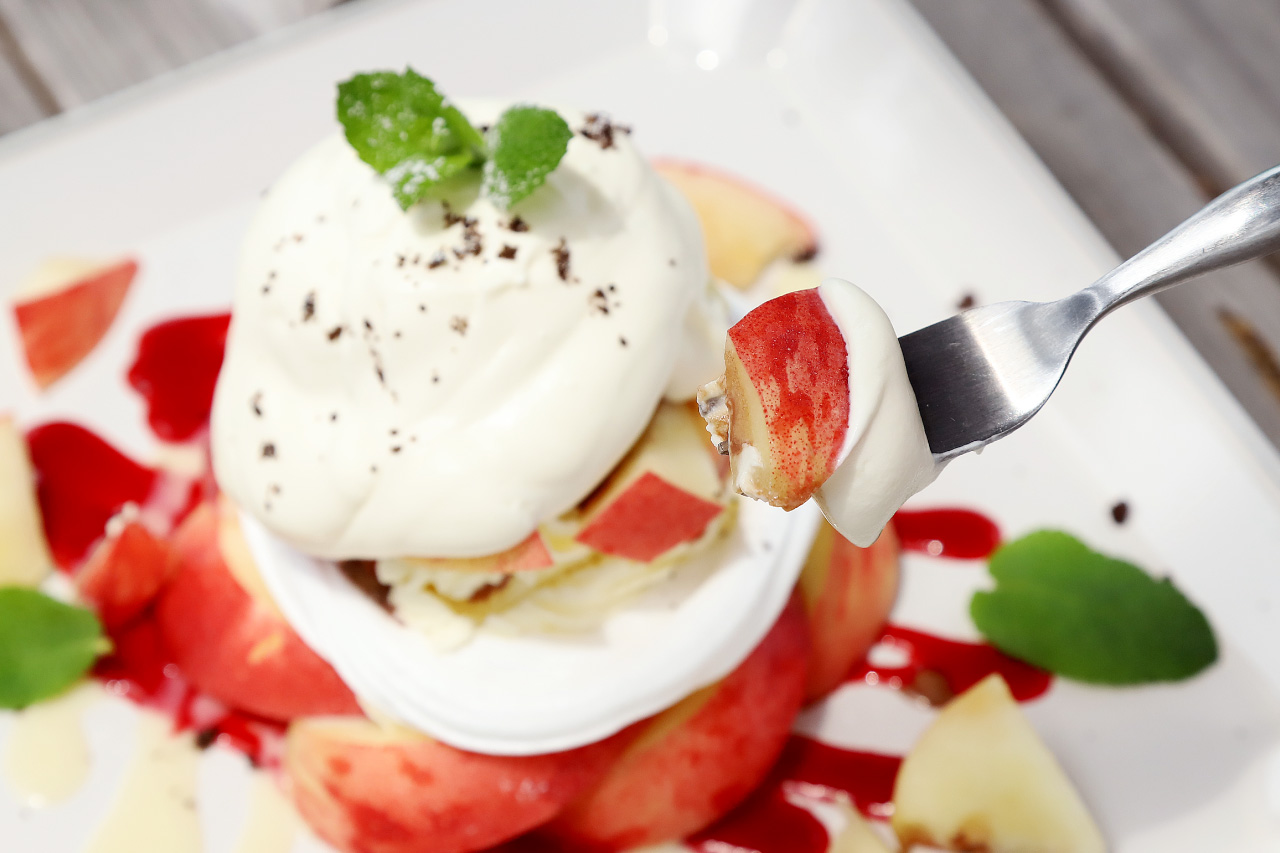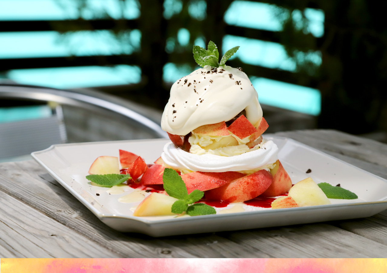 ジューシーな桃とチョコレートのビターなコク、パブロバのサクサク食感が織りなすハーモニーは、得も言われぬ美味しさ!