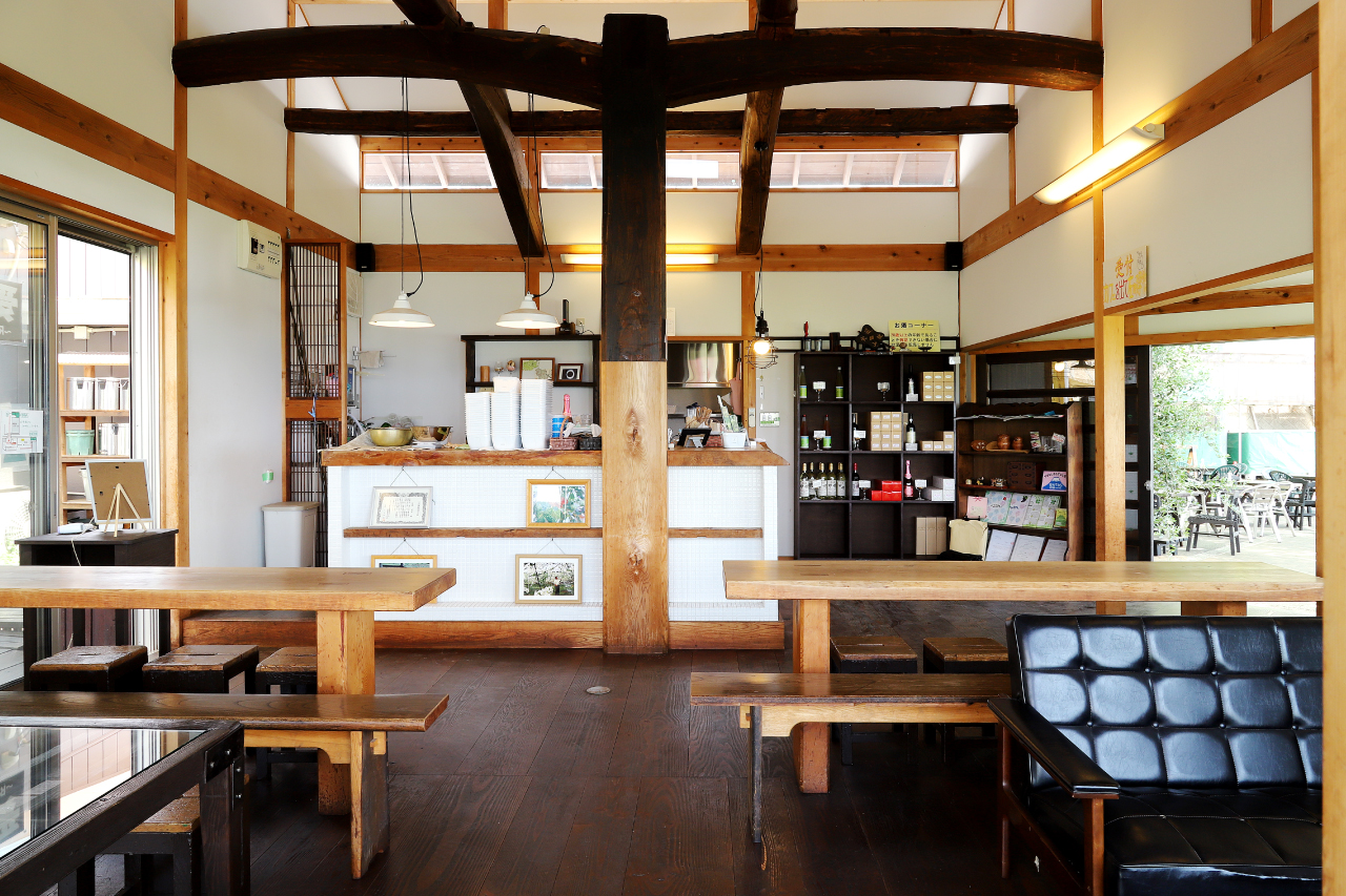 また古民家の建材を再利用した趣ある店内と、テラスから望む美しい景観も多くの人を魅了するポイントのひとつ。