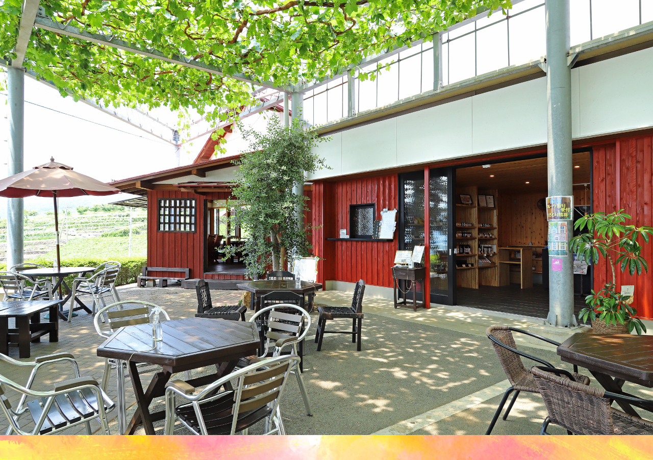 さくらんぼや桃、ブドウ狩りができる萩原フルーツ農園内にあるカフェ。