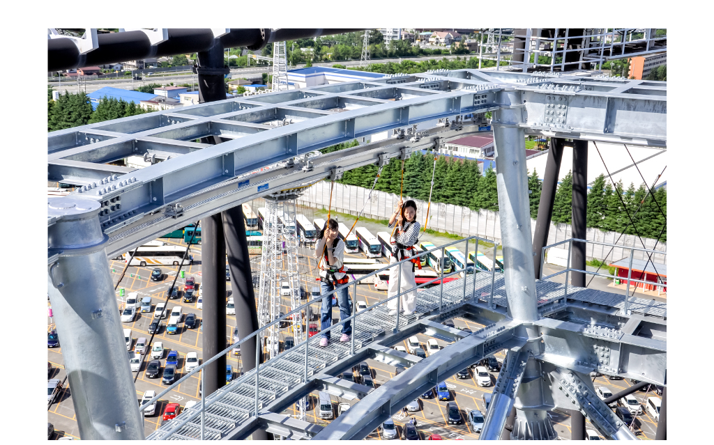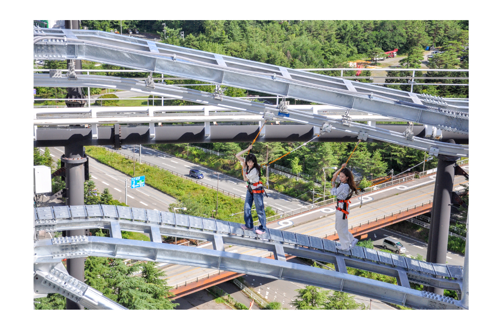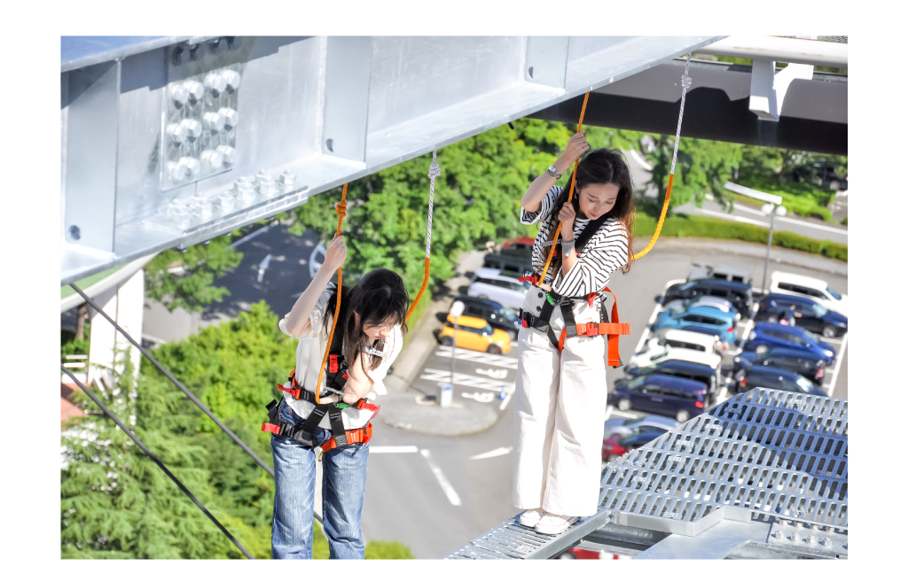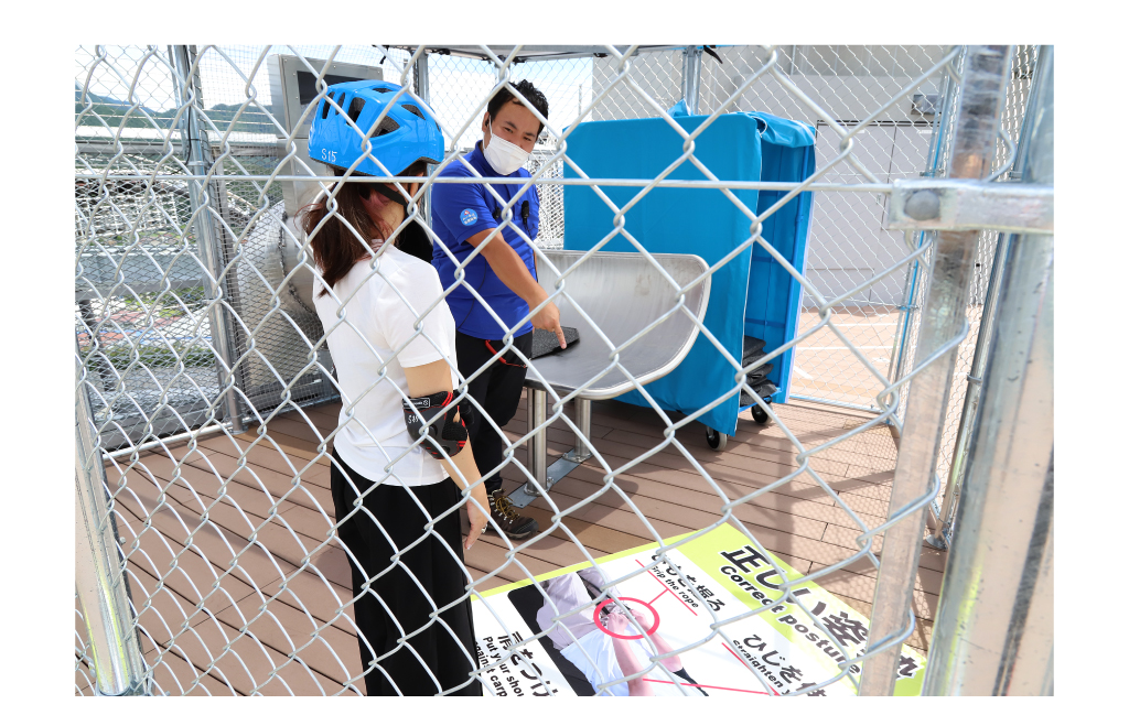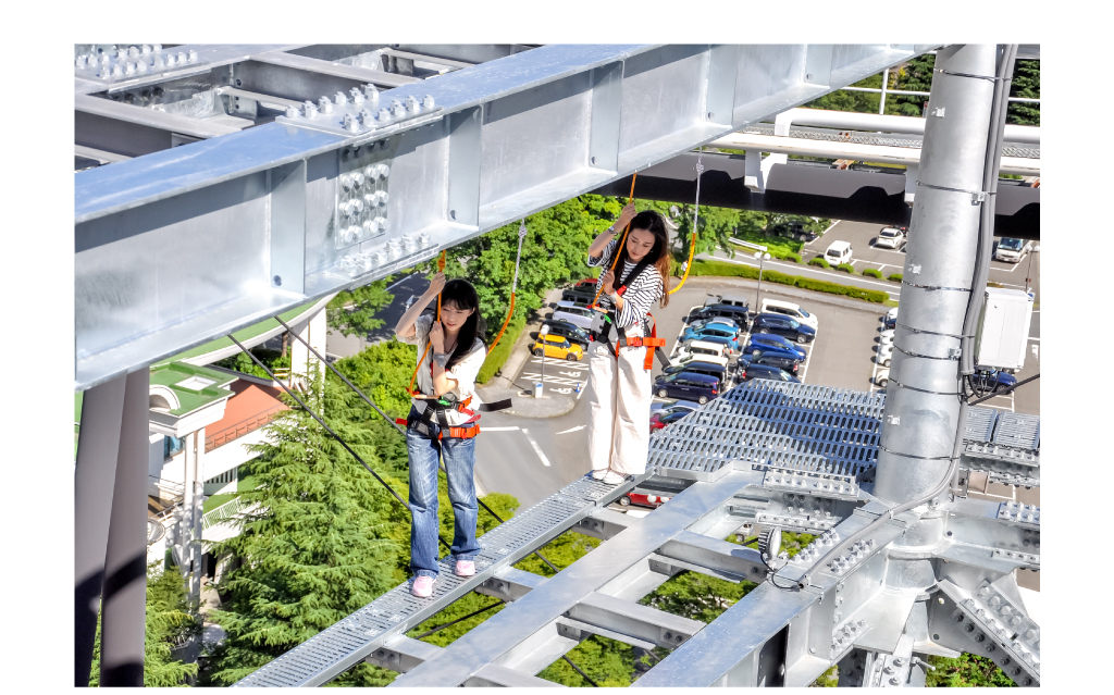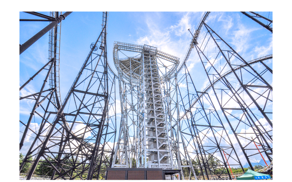 富士山を一望できる絶景展望台「FUJIYAMAタワー」。高さ55mにある展望デッキから見渡す富士山は、まさに最高!!でもこれだけじゃあ、「絶叫アトラクションを誇る富士急ハイランドらしさが足りない!」という社内の声から、生まれた絶叫アクティビティ。