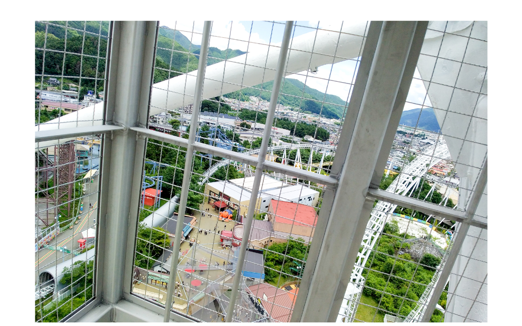 スケスケの吹きさらしの檻覧車に収監されたら、周囲の嘲笑に耐えつつ、爽やかに怖い約11分間のお仕おきタイムをじっと耐える。