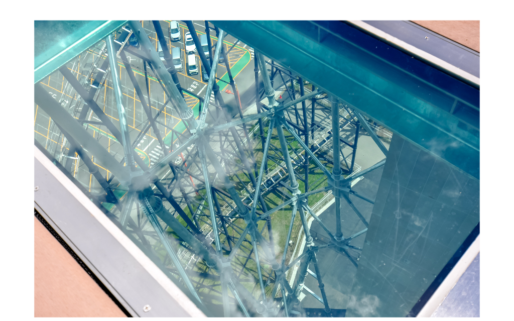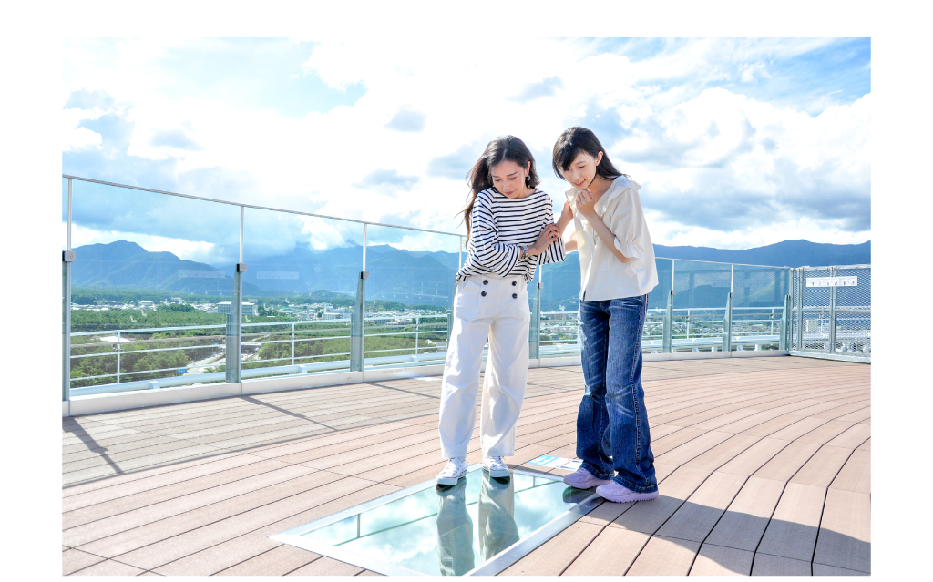開放的なデッキの一部には、下が透けて見える小窓が…!!思わず足がすくんじゃう~!勇気ある人はぜひこの上に立ってみよう。